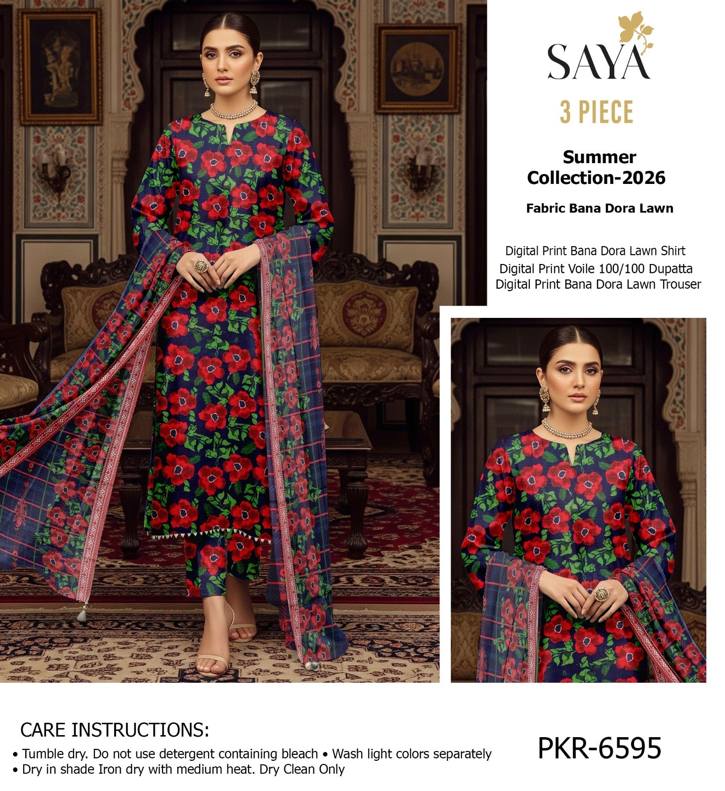 Lawn Bana Doria 3 pic Digital Print All over